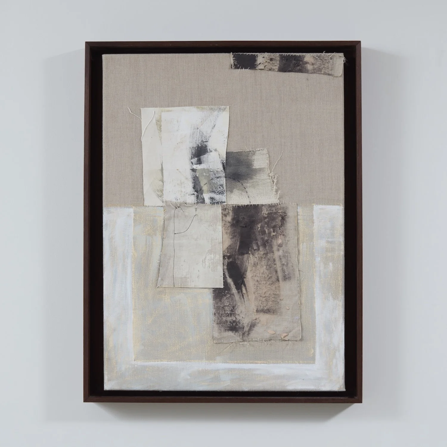 MIXED MEDIA, FABRIC AND CARDBOARD COLLAGE AND ACRYLIC ON CANVAS