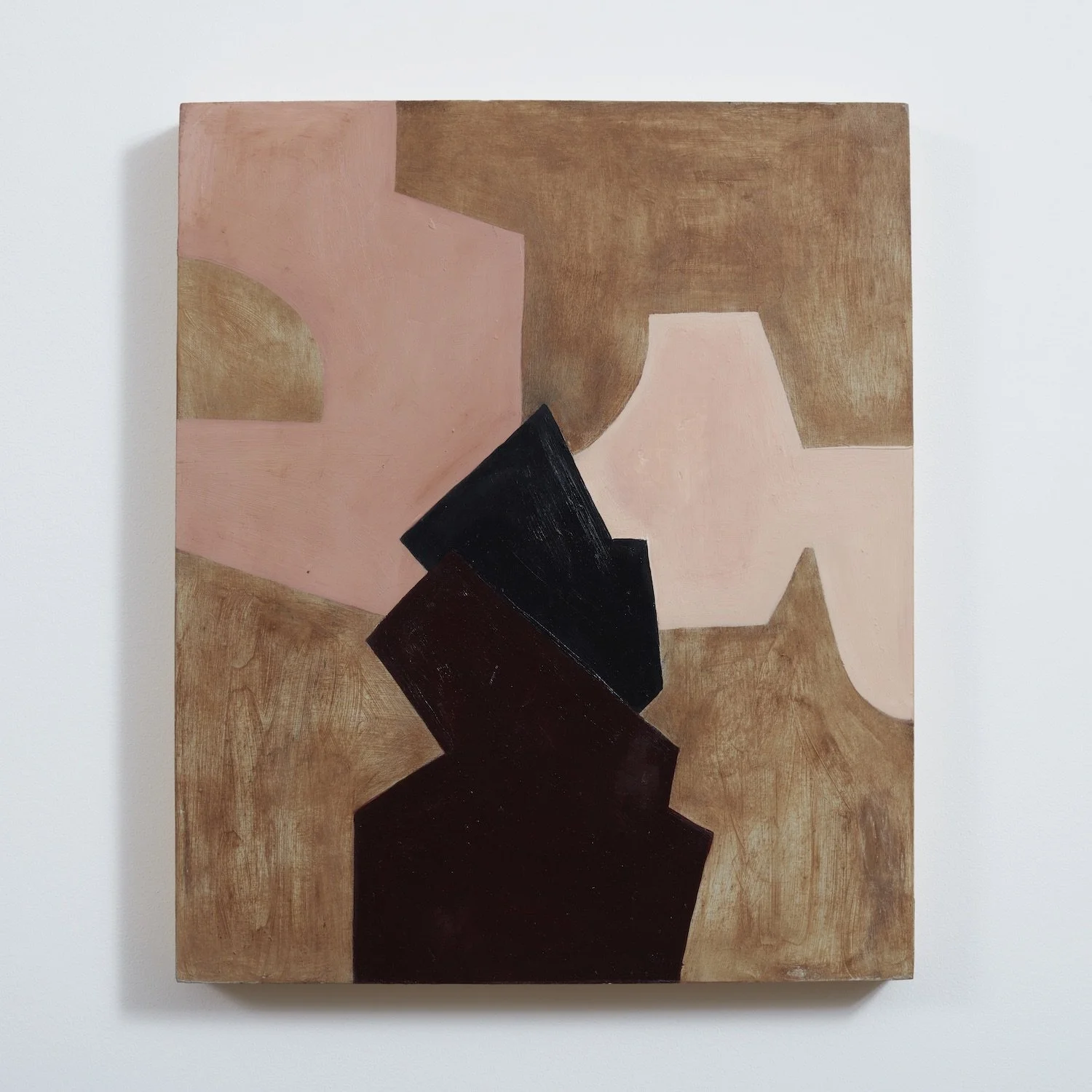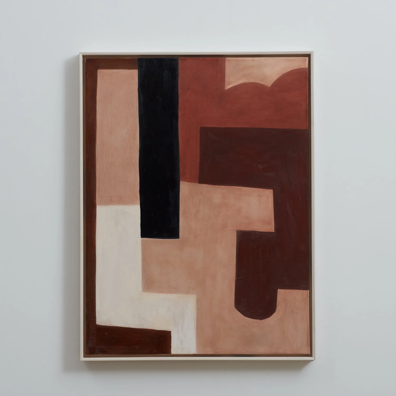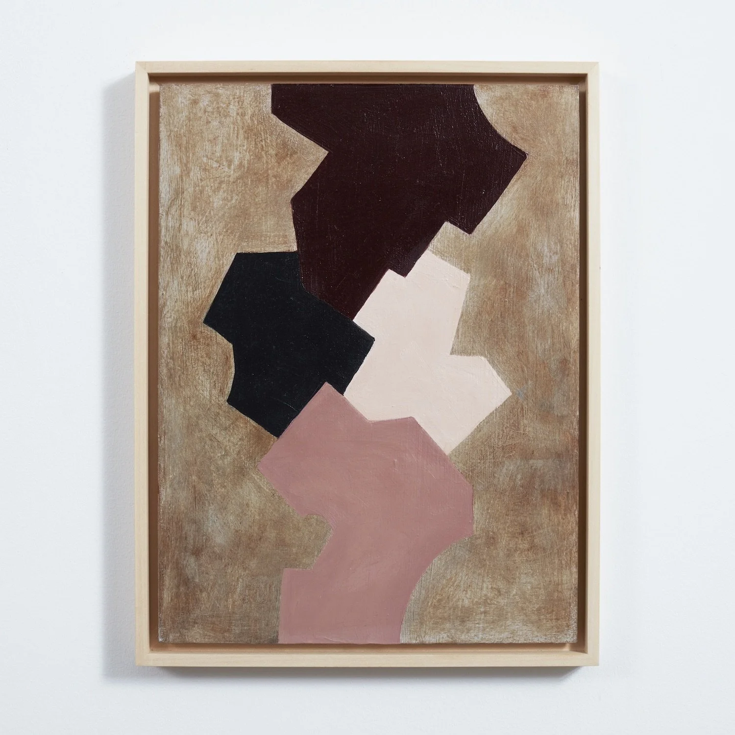 Hannah Ludnow’s paintings have grown out of her abstract work. She started to abstract the elements of these paintings right back to line, shape and colour, aiming to create a sense of peace and calm in the space. The elements are in sync with each other, they resonate and sit in tranquility. They are ethereal and dream-like but with structure. In her recent work, she has started to explore stripping these ideas back further, creating structured shape work. The shapes sit in harmony with each other, and her use of deep rich and earthy pigments tie the works back to a landscape setting.