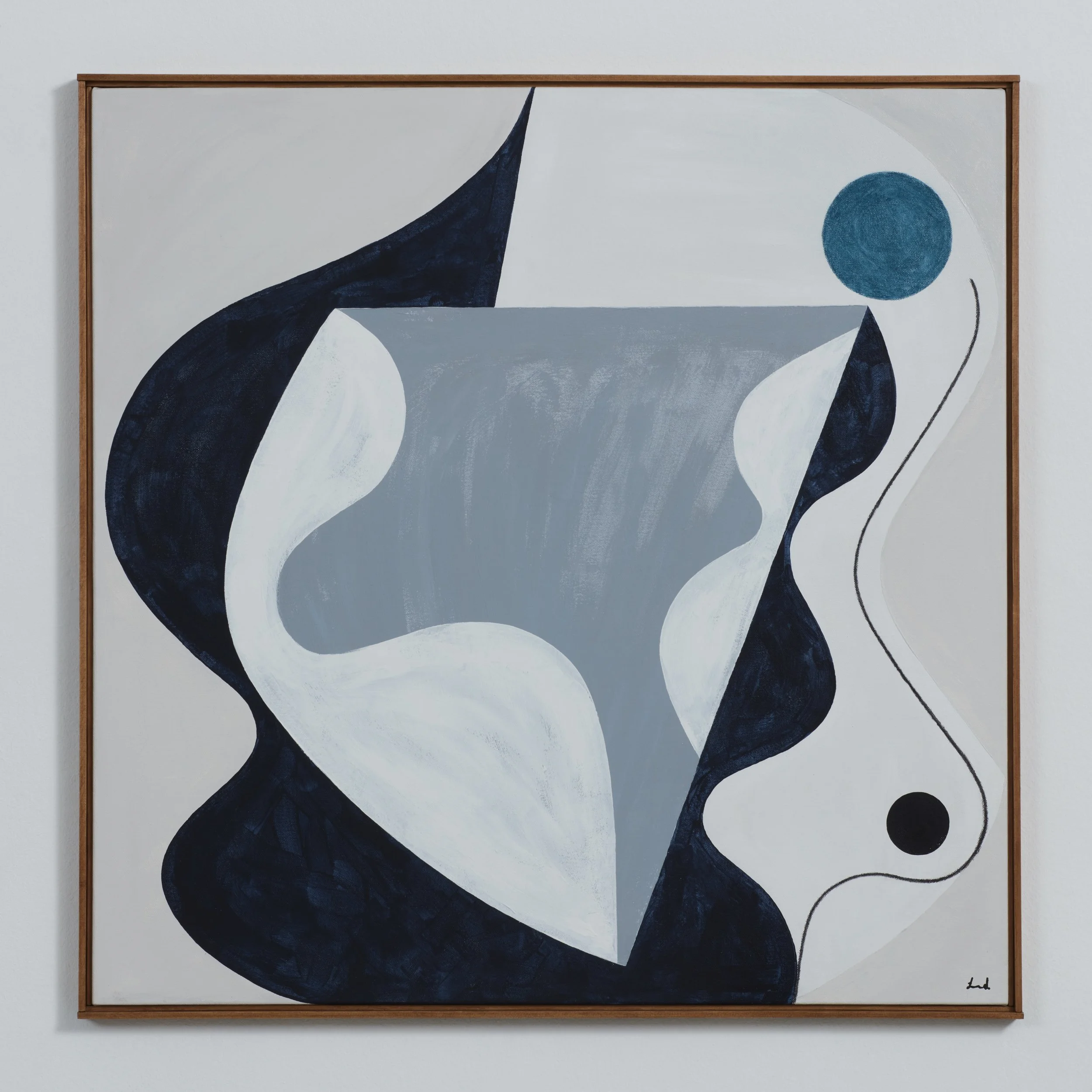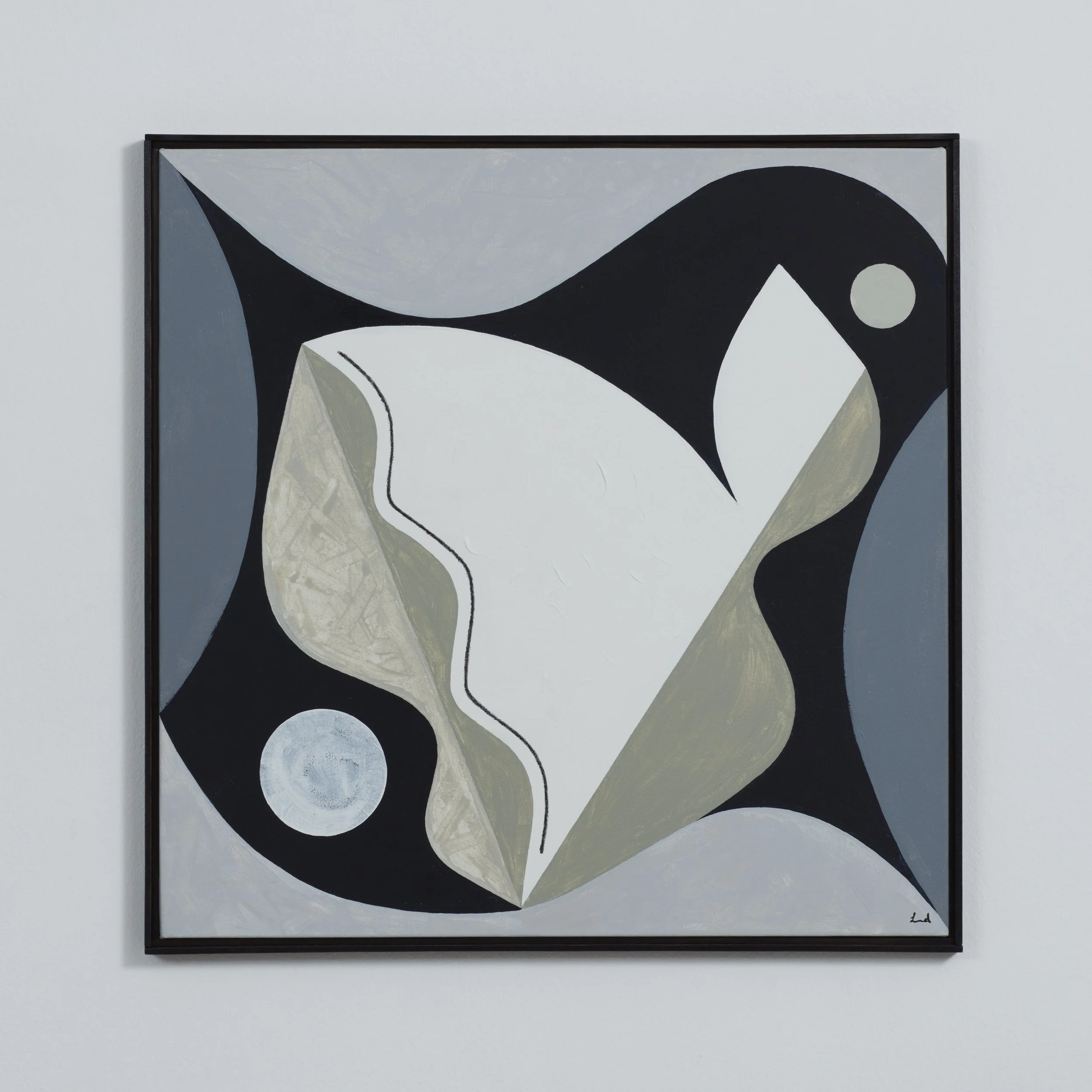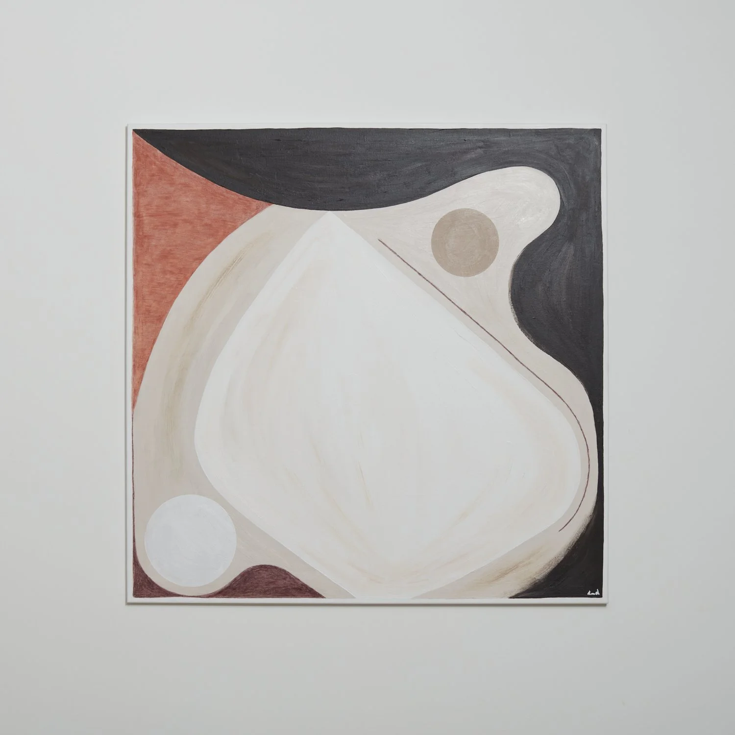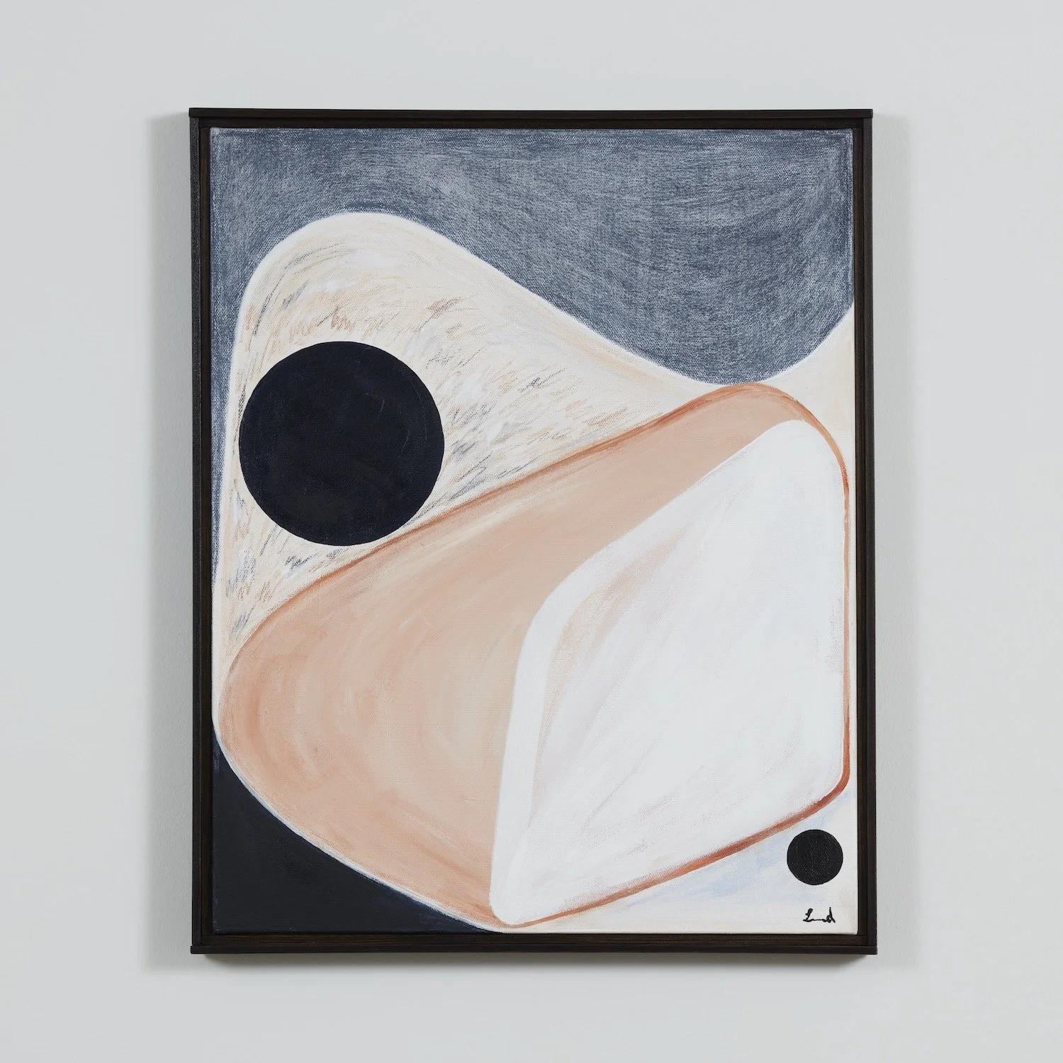 Laura creates abstract pieces that are studies of shapes and structures. By examining both form and colour, she often uses soft and muted tones to create dreamlike abstractions whilst pairing these with geometric shapes.