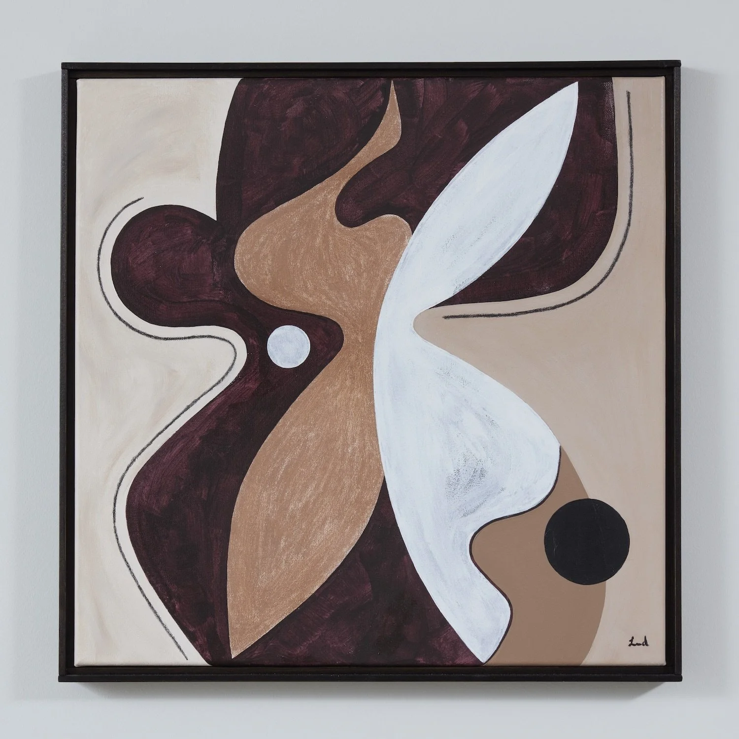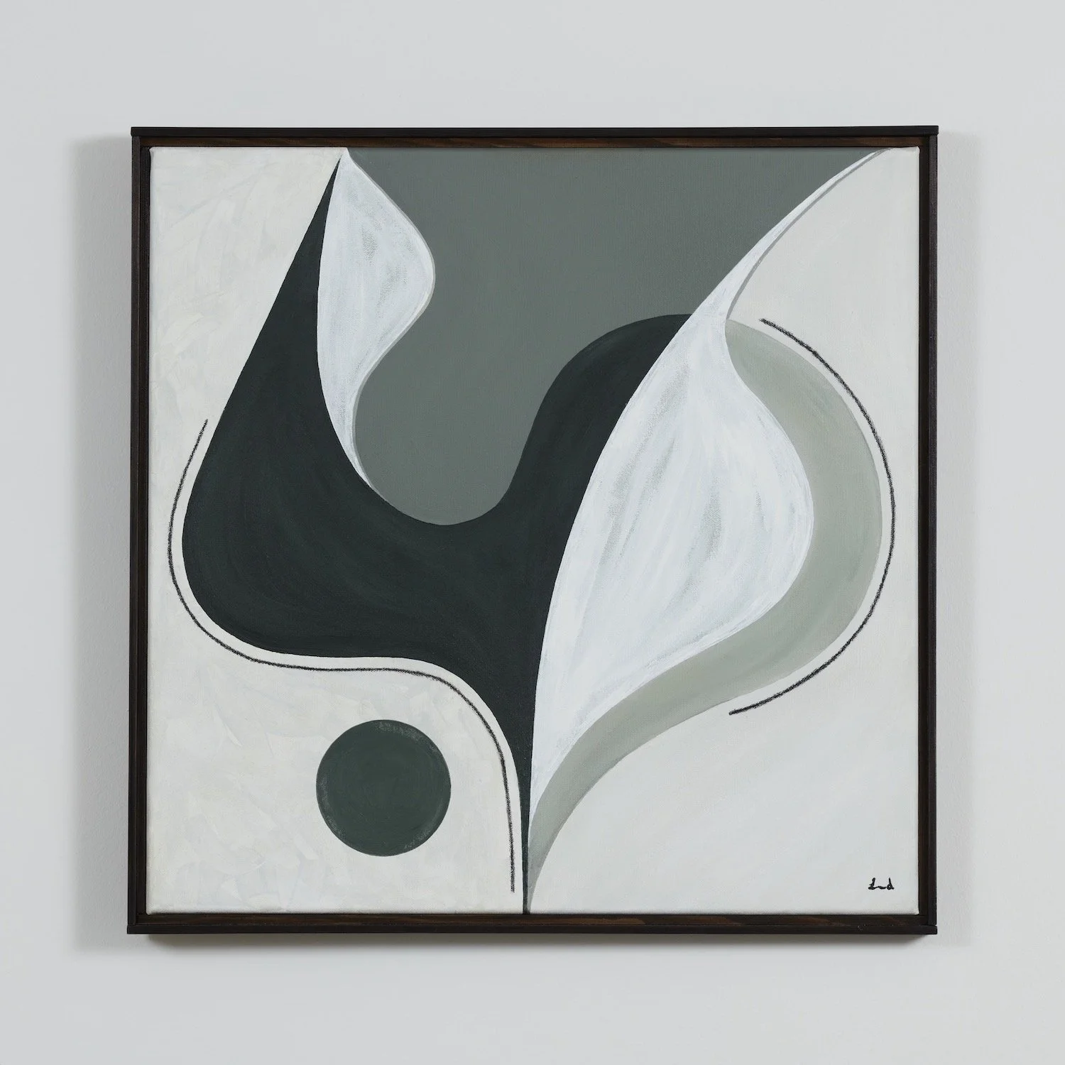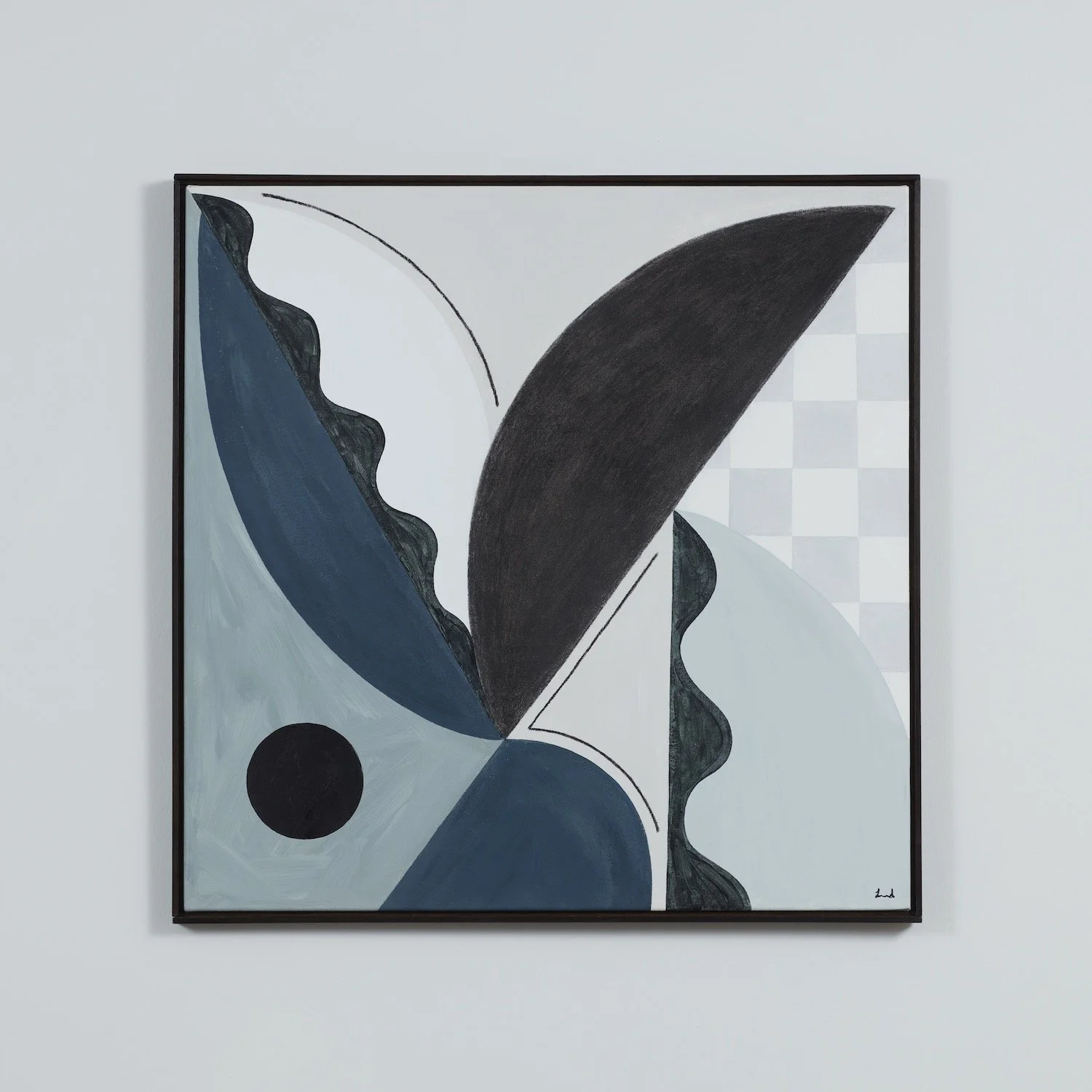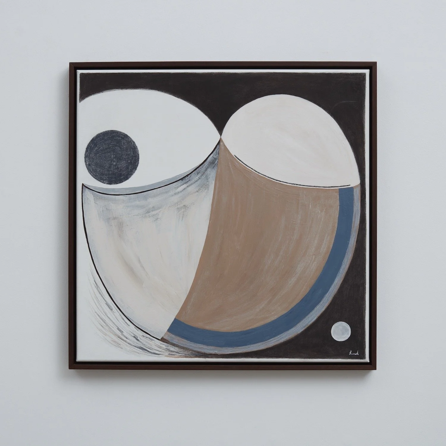 Laura creates abstract pieces that are studies of shapes and structures. By examining both form and colour, she often uses soft and muted tones to create dreamlike abstractions whilst pairing these with geometric shapes.