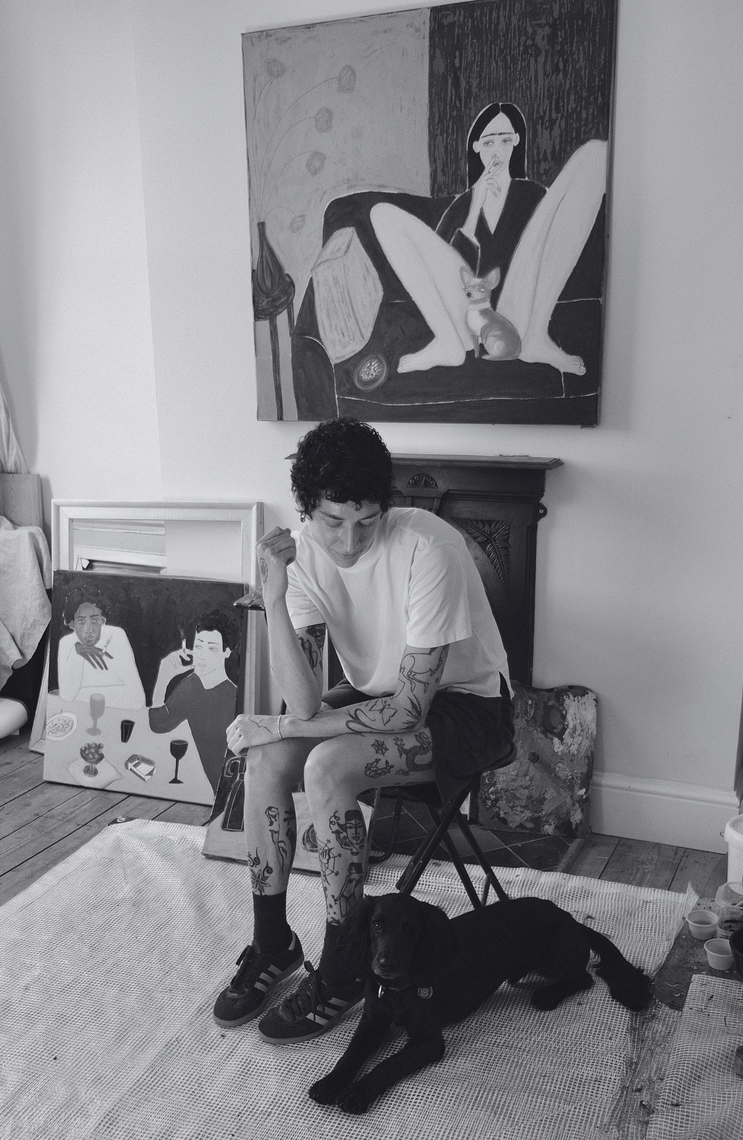 Lottie’s paintings are colourful and rich in texture and form. They show moments of guilty pleasure in people’s daily lives, with subtle knowing humour and acceptance. Her work also comprises still lives, with the same nod to a moment taken for oneself.